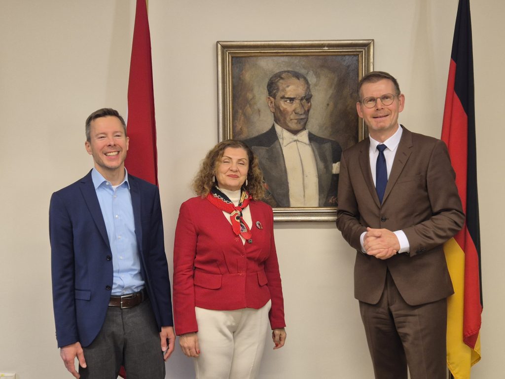 Herr Leber hatte die bekannte Journalistin Kristina Karasu in die Schule eingeladen, die sehr viel Interessantes über die aktuelle Situation in der Türkei zu berichten wusste, auch die beiden Schülersprecher des Schuljahres 2024/25, Ömer Batu Özek und Derin Çakır (beide Klassenstufe 12), waren zu einem Gespräch mit den Besuchern bereit und wussten mit ihrer Intelligenz und ihrer sprachlichen Gewandtheit zu beeindrucken.
