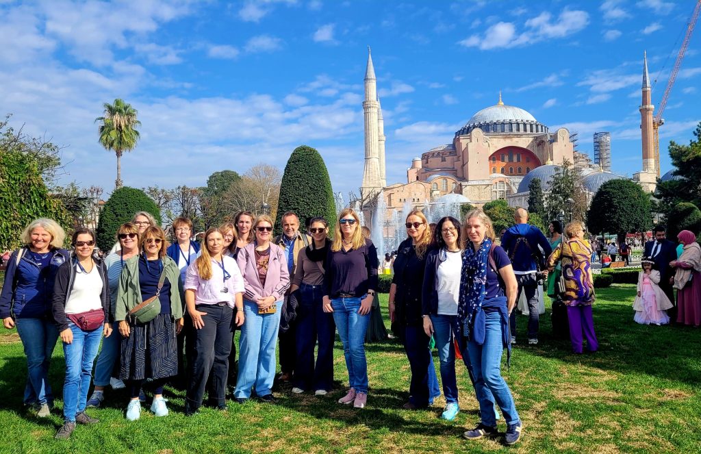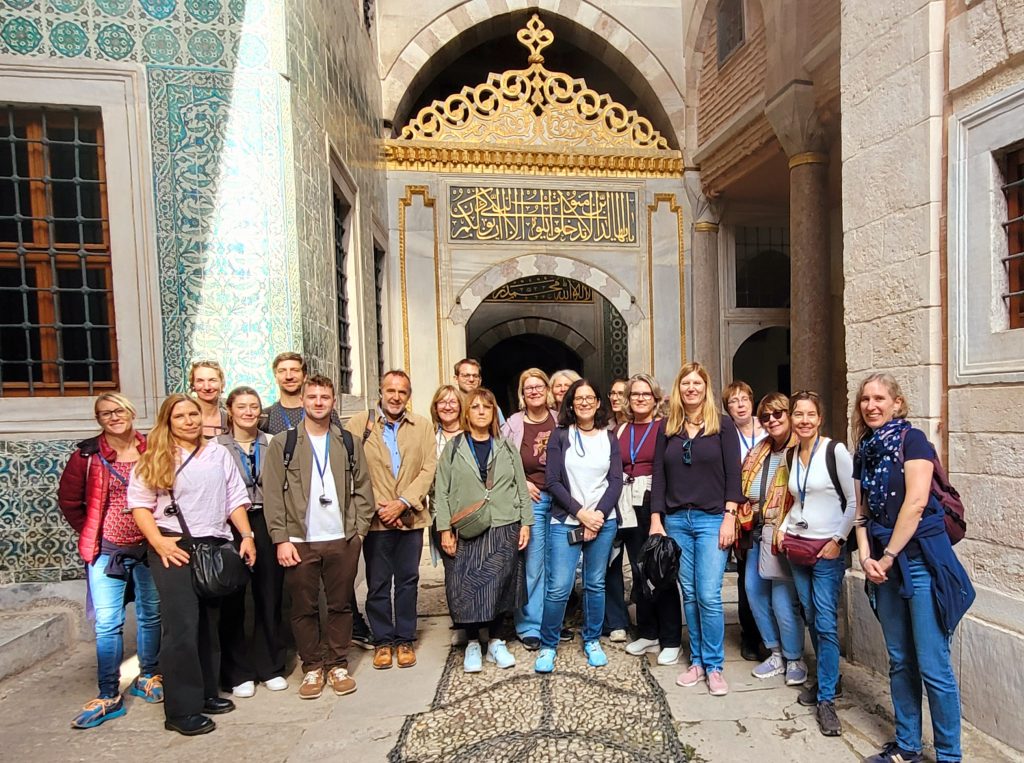 Als unser ehemaliger Schulleiter Georg Leber im Sommer 2024 das Schönborn-Gymnasium verließ, um an der Deutschen Schule Istanbul seine neue Stelle als Schulleiter anzutreten, wollten ihn viele am liebsten gar nicht ziehen lassen. Bei der Verabschiedung erklärte Herr Leber, er wolle die Kollegen gerne einmal nach Istanbul einladen – und in der Tat, ein Jahr später machte er Nägel mit Köpfen und organisierte für Interessierte eine fünftägige Reise in die Stadt am Bosporus. Eine Gruppe von insgesamt 22 Personen folgte in den Herbstferien vom 25. bis 29. Oktober seiner Einladung, darunter 18 im Dienst befindliche Lehrerinnen und Lehrer – am Alman Lisesi in Istanbul war man denn auch beeindruckt, dass so viele ihren ehemaligen Schulleiter besuchen wollten; die deutschen Besucher wiederum waren beeindruckt von der kulturellen Vielfalt und dem historischen Reichtum dieser ganz besonderen Metropole, die ja einstmals Konstantinopel bzw. noch davor Byzanz hieß.